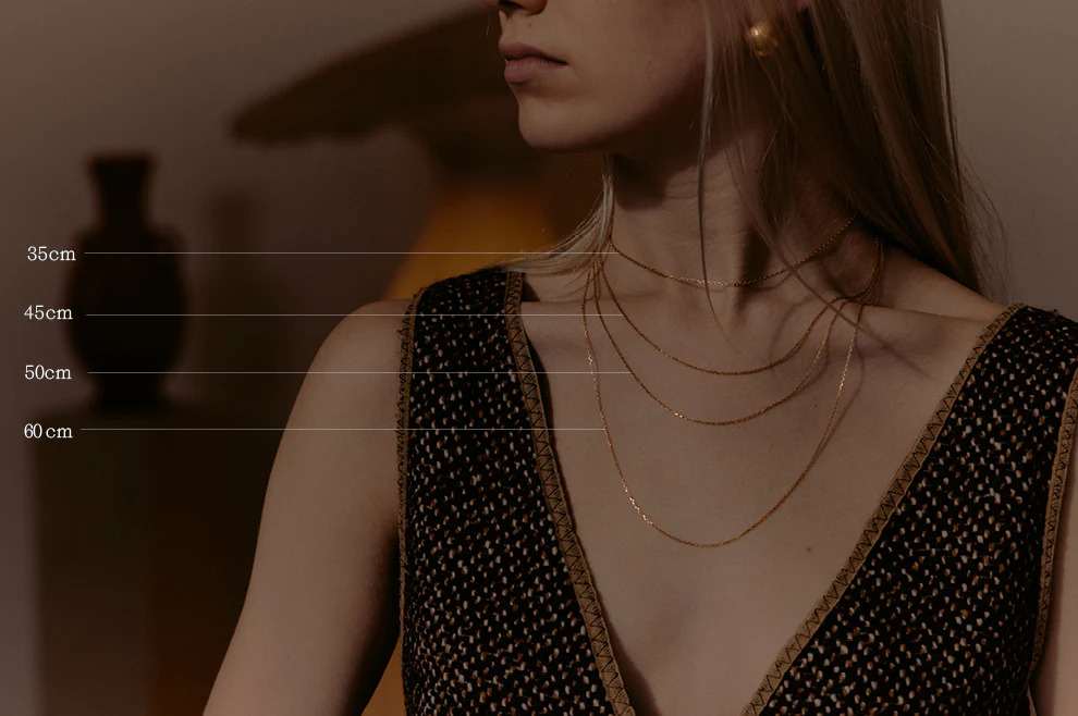 Our necklace lengths are specified in their product descriptions. Extenders are available to increase the length. If you are unsure of your size or preferred length, drape a ribbon around your neck at the desired height, then measure this against a ruler or tape measure.