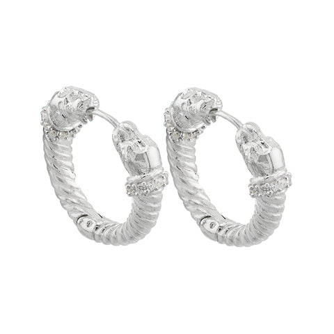 Silver lion’s heads set with cubic zirconia eyes and collars recall the power and playfulness of Lucrezia Borgia, a figure of immense subtlety and artfulness. Wear them to punctuate sharp tailoring or elevate evening simplicity with authority.